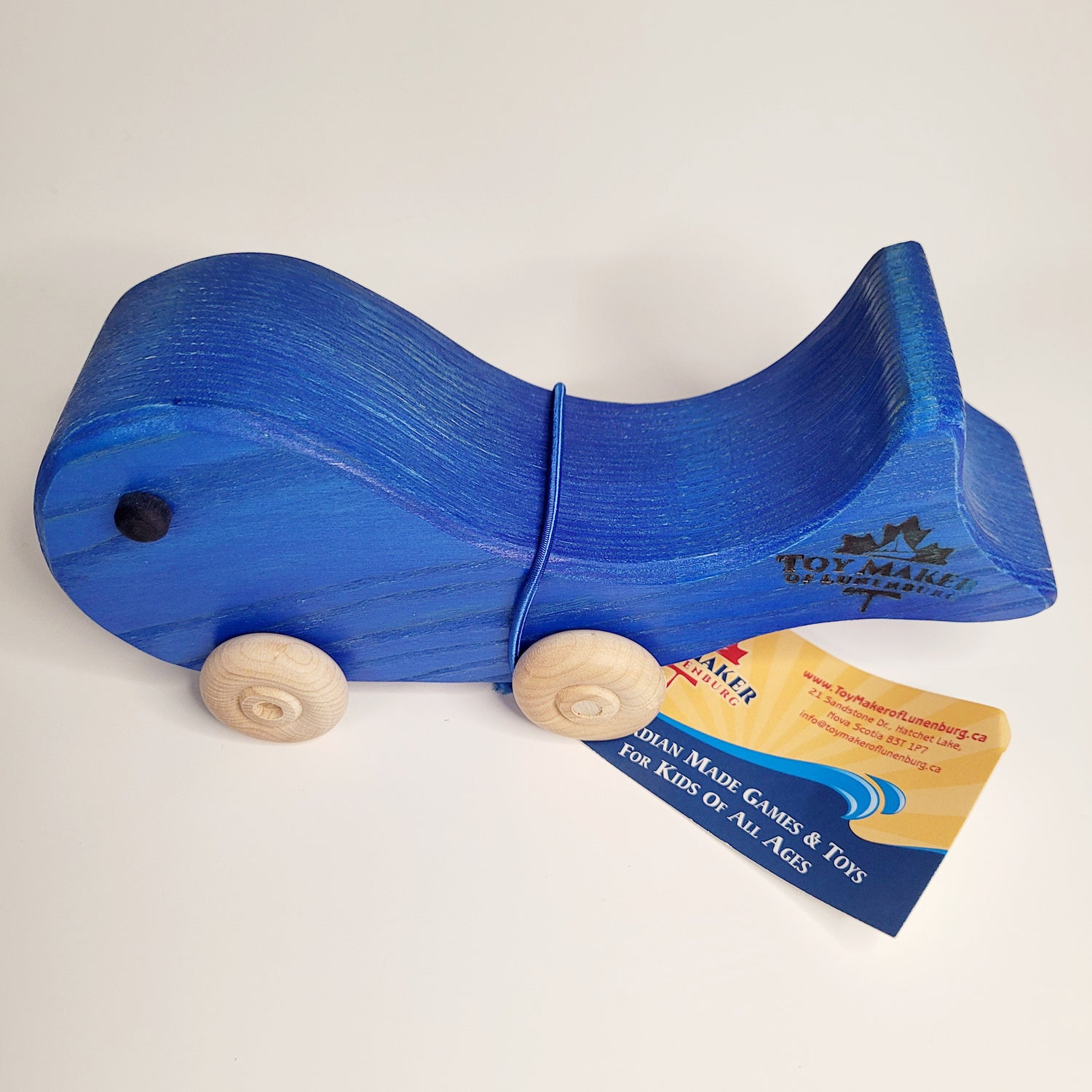 This wooden whale is made in Nova Scotia by The Toy Maker of Lunenburg.